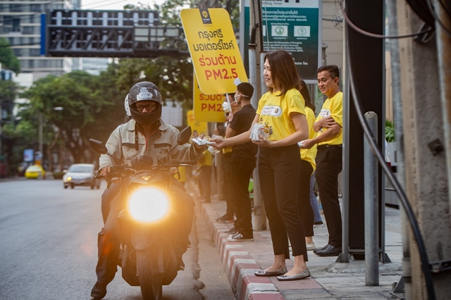 นอกจากนี้ "กรุงศรี มอเตอร์ไซค์" นำโดย นางกฤติยา ศรีสนิท ประธานคณะเจ้าหน้าที่ด้านธุรกิจสินเชื่อยานยนต์ ธนาคารกรุงศรีอยุธยา จำกัด (มหาชน) พร้อมทีมผู้บริหาร ยังร่วมส่งต่อความห่วงใยแก่ผู้ขับขี่รถจักรยานยนต์ด้วยการมอบหน้ากากอนามัย N95 จำนวน 6,000 ชิ้น แก่ผู้ขับขี่และเดินทางด้วยรถจักรยานยนต์ บริเวณสี่แยกเพลินจิต ถนนวิทยุ รวมไปถึงพ่อแม่ ผู้ปกครอง และเด็กๆ โรงเรียนสวนลุมพินี และกองอำนวยการร่วมถวายความปลอดภัย โรงพยาบาลจุฬาลงกรณ์ เพื่อเป็นอีกหนึ่งวิธีป้องกันฝุ่นละออง PM 2.5 ที่สูงเกินมาตรฐาน และสามารถเกิดอันตรายแก่ร่างกายได้
