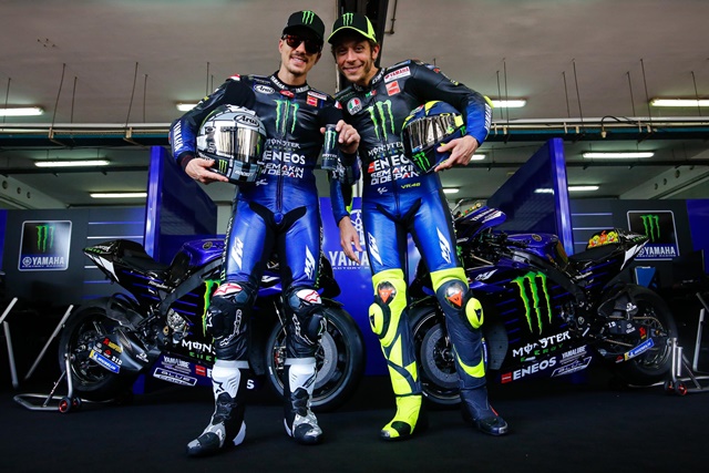 ยามาฮ่า พร้อมลุยโมโตจีพี 2020 ด้วยการเปิดตัวรถแข่งและ 4 ขุนพล จากทีมโรงงานและ เปโตรนาส เอสอาร์ที ซึ่งเป็นภาพสุดท้ายของรอสซี่กับการเปิดตัวพร้อมทีมโรงงาน เพราะปี 2021 ก็จะเป็น ฟาปิโอ กวาตาราโร ที่เขยิบขึ้นมาแทนที่ขี่คู่กับ มาเวอลิค บิญาเลส สำหรับรถยามาฮ่า M1 2020 ดีไซน์ไม่ต่างจากไปปีก่อนมากนักยังคงเล่นธีมดำเขียวตามสปอนเซอร์เครื่องดื่มชูกำลัง