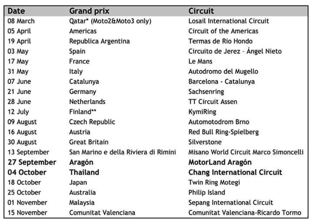 ล่าสุดได้มีการยืนยันออกมาแล้วจาก เอฟไอเอ็ม, สมาคมทีมแข่งจักรยานยนต์นานาชาติและ ดอร์น่า สปอร์ต เจ้าของลิขสิทธิ์การจัดการแข่งขัน MotoGP ได้ประกาศปรับเปลี่ยนตารางการแข่งขัน OR Thailand Grand Prix 2020 ที่จะจัดขึ้นในประเทศไทย โดยกำหนดการอย่างเป็นทางการนั้นได้เลื่อนไปเป็นสนามที่ 16 ระหว่างวันที่ 2-4 ตุลาคม 2563 ณ สนามช้าง อินเตอร์เนชั่นแนล เซอร์กิต จ.บุรีรัมย์