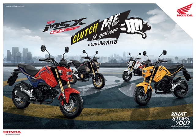 เอ.พี. ฮอนด้า เอาใจวัยรุ่นทั่วประเทศ ด้วยการปล่อย MSX125SF สีสันใหม่ เท่ขึ้นกว่าเดิม สไตล์ซูเปอร์ฮีโร่ให้กลุ่มรถ 125 ซีซี เพื่อตอกย้ำความนิยมอันดับหนึ่งในเมืองไทย ส่งมอบความมันส์ภายใต้คอนเซ็ปต์ Clutch Me If You Can ตามมาสิคลัทช์ สะท้อนความสนุก คล่องตัว ควบคุมง่ายดั่งใจคิด แต่ยังเร้าใจกว่าด้วยคลัทช์มือ