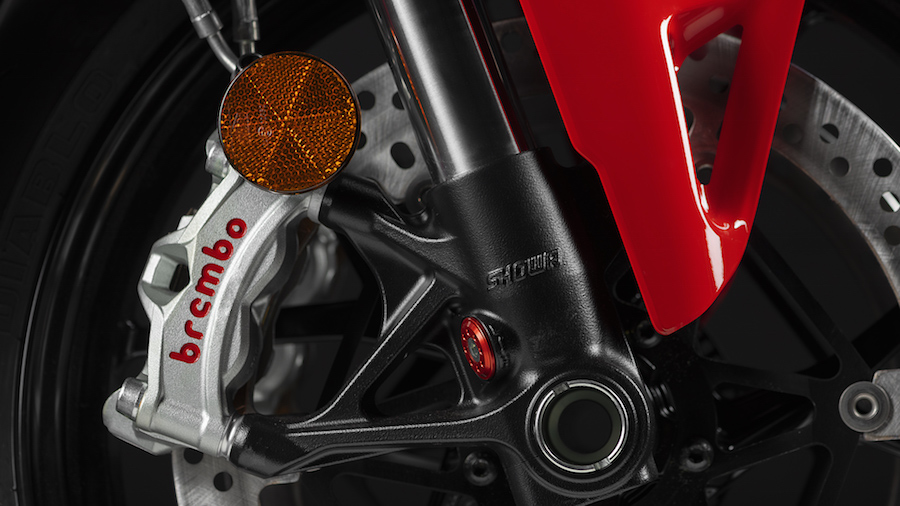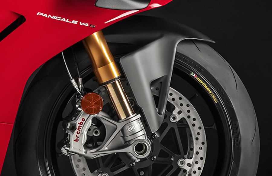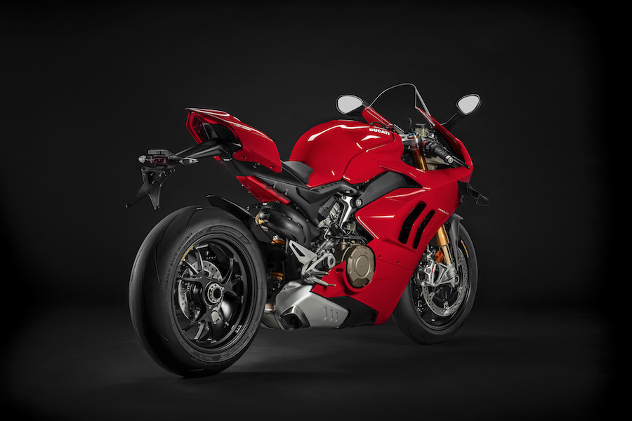 Ducati และ Ducati Corse ได้ร่วมกันพัฒนารถโดยใช้ข้อมูลจากผู้ใช้รถ Ducati ทั้งการใช้งานบนท้องถนนทั่วไป และจากการแข่งขัน World Superbike จึงปรับเฟรมหน้าให้มีความแข็งแรงและมีการยืดหยุ่นที่ดี ซึ่งเป็นจุดเด่นที่ต่างจาก Panigale V4 เวอร์ชั่นที่แล้ว ที่เฟรมหน้าและระบบช่วงล่างที่มีจุดศูนย์ถ่วงสูงขึ้น เพื่อเพิ่มประสิทธิภาพสูงสุดขององศาการเอียงรถในขณะเข้าโค้งเช่นเดียวกันกับ V4 R ส่งผลให้ผู้ขับขี่สามารถเข้าโค้งได้ง่ายและรวดเร็วขึ้น