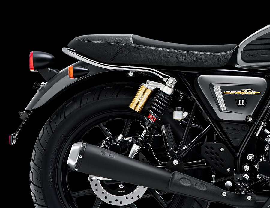 อีกทั้งยังเสริมประสิทธิภาพเพื่อการเดินทางให้กับคุณ ด้วยโช๊คอัพหลังคู่ คุณภาพระดับสากลจากแบรนด์ YSS ในรุ่น G-Series ซึ่งเป็นโช๊คแก๊ส แบบเเยกห้องระหว่างน้ำมันเเละเเก๊ส แฝงดีไซน์ความเท่ระดับตำนาน ด้วย Sub Tank สีทอง เสริมเสน่ห์ความเท่ และความหรูหรา แบบคลาสสิกให้กับตัวรถ ภายใน Sub Tank บรรจุแก๊สไนโตรเจนเอาไว้ ทำให้การเคลื่อนที่ของโช๊คเป็นไปอย่างนุ่มนวล นอกจากนี้ ตัวโช๊คยังสามารถปรับระยะพรีโหลดได้ โดยการปรับแบบเกลียวหรือที่เรียกว่า ระบบ Threaded spring preload จึงสามารถปรับให้รองรับกับการใช้งานที่หลากหลายได้เป็นอย่างดี