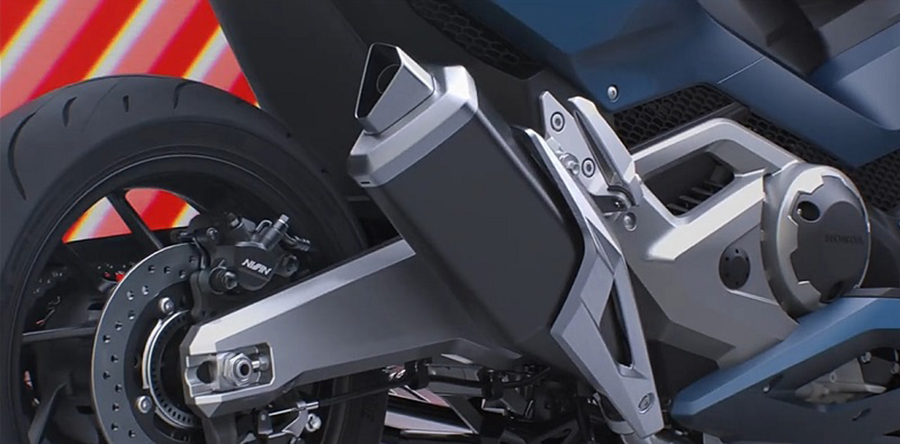 จากภาพจะเห็นรายละเอียดของตัวรถพอสมควร ภาพรวมเสมือนการผสมผสานระหว่างฟอร์ซ่ากับอินเทกรา ความแตกต่างคือด้านท้ายเหมือนกับบิ๊กไบค์ทั่วไป เหมือนอย่างอินเทกรา ทำให้การเหยียดขาค่อนข้างมาก ด้านหน้าก็คล้ายสกู๊ตเตอร์ยอดนิยมอย่างฟอร์ซ่าการออกแบบได้ฟอร์ซ่า 350 ใหม่ที่เพิ่งเปิดตัวไปเป็นร่างในหลายจุด โดยเฉพาะชิลด์กับไฟหน้าที่สะท้อนความเป็นฟอร์ซ่าชัดเจน ไฟเสริมที่ฝังอยู่ในแฟริ่งด้านหน้า โช๊คหน้าแบบหัวกลับ