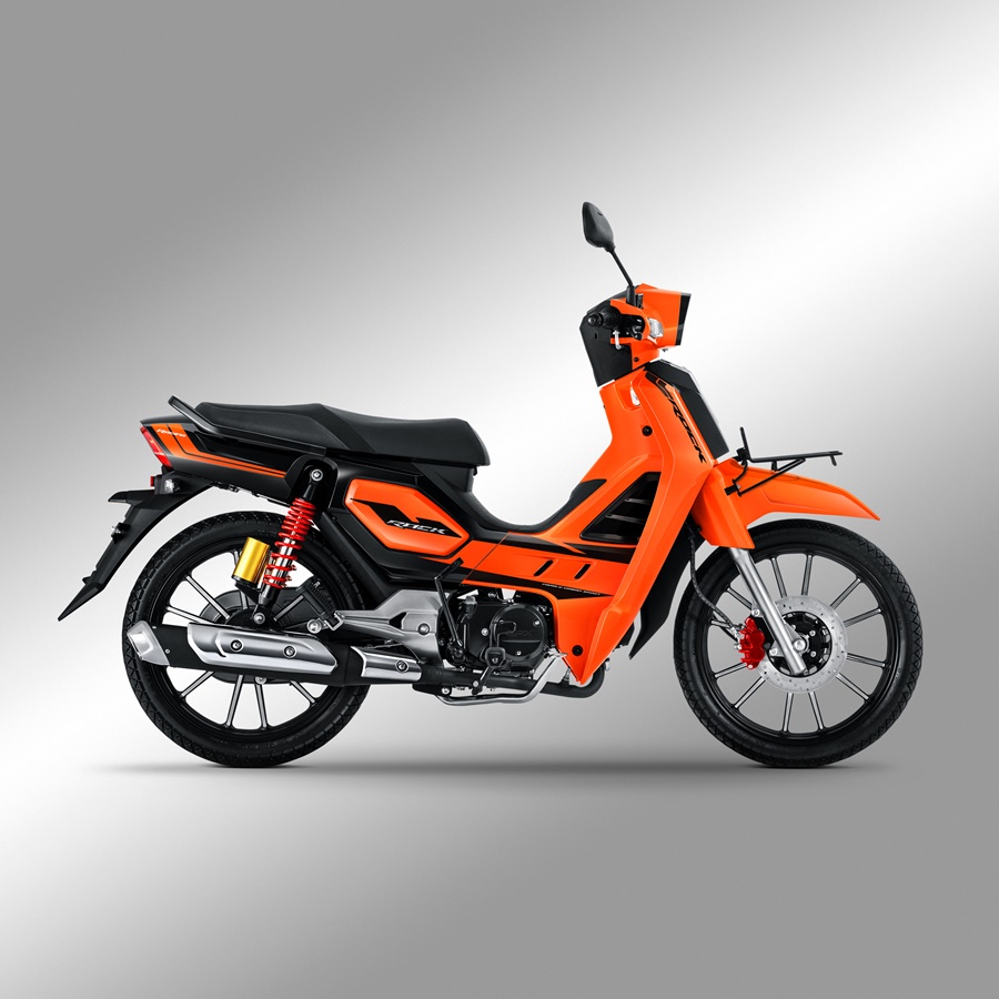 2. ROCK Racing : สีส้ม, สีดำด้าน = โช้กอัพหลังคู่ แบบมีซับแทงค์แต่ง พร้อมสปริงสปอร์ต ในดีไซน์สีแดงเรซซิ่ง, ล้ออัลลอยราคาเปิดตัวแนะนำขาย 37,900 บาท