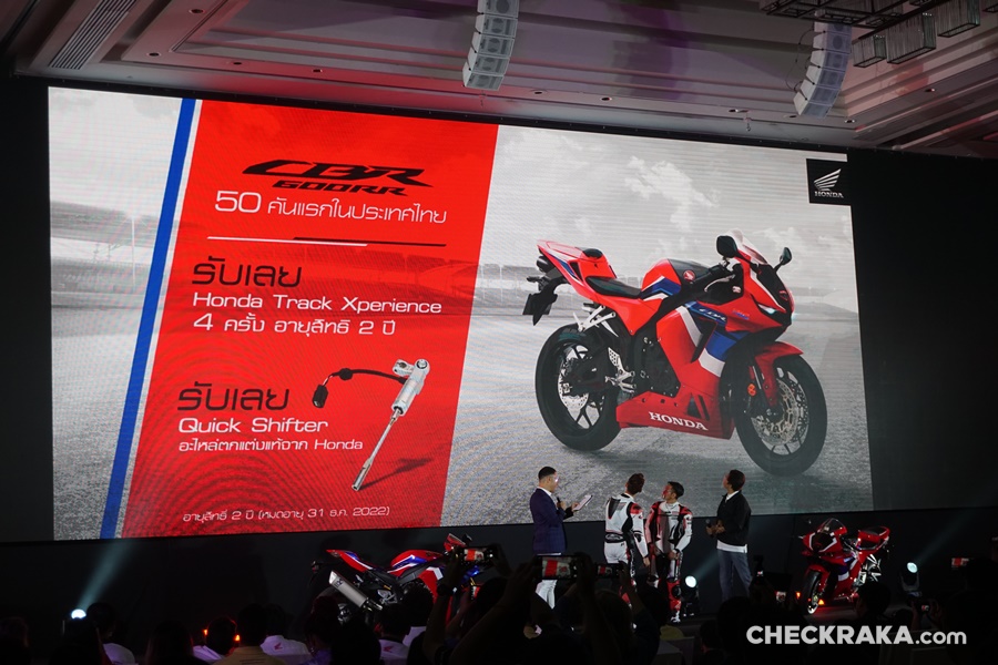 สำหรับ All New CBR600RR เปิดตัวด้วยราคาแนะนำที่ 549,000 บาท โปรโมชั่นพิเศษสำหรับลูกค้า 50 คันแรก รับทันที ชุดแต่งเพอร์ฟอร์แมนซ์ Quick Shifter ออฟชันเสริมการขับขี่จากฮอนด้า พร้อมสิทธิพิเศษในการเข้าร่วมกิจกรรม Honda Track Xperience จำนวน 4 ครั้ง ภายใน 2 ปี