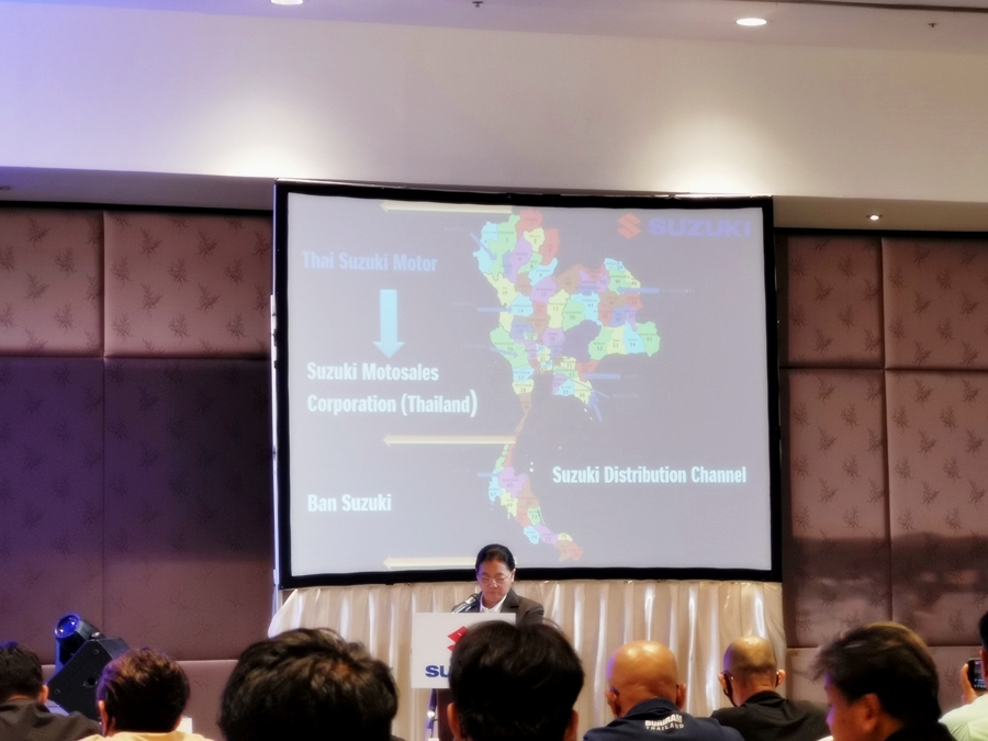 และในปีนี้ ซูซูกิ สำนักงานใหญ่ และ ไทยซูซูกิ ได้มีการตัดสินใจครั้งใหญ่ เพื่อให้ ซูซูกิ สามารถแข่งขันในตลาดประเทศไทยต่อไป ตลอดจนเพิ่มยอดการขายรถจักรยานยนต์และเพิ่มส่วนแบ่งทางการตลาดของซูซูกิอีกครั้ง เราคิดว่าอาจจะเป็นเรื่องยากถ้าหากเรายังดำเนินการทำธุรกิจแบบเดิมๆต่อไป ดังนั้นเราจึงได้ตัดสินใจในการทำสิ่งที่ท้าทายใหม่ โดยในโอกาสนี้ เราได้จัดตั้งผู้จัดจำหน่ายใหม่โดยร่วมกับบริษัท บ้านซูซูกิ จำกัด ที่เป็นผู้จัดจำหน่ายรถจักรยานยนต์ซูซูกิในเขตภาคใต้ขึ้น ในชื่อ "บริษัท ซูซูกิ โมโตเซลส์ คอร์ปอเรชั่น (ประเทศไทย) จำกัด"