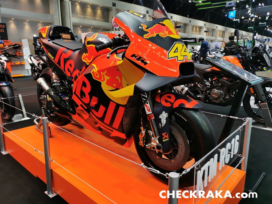 นอกจากนี้ยังมีรถ KTM RC16 ที่ใช้ในการแข่งขัน MotoGP ของ Pol Espargaro หมายเลข 44 มาจัดแสดงด้วย สาวกตัวจริง และแฟนพันธุ์แท้ของ KTM สามารถมาชมและสัมผัสตัวจริงก่อนใครได้ที่บูธ KTM & Husqvarna ได้ในงาน