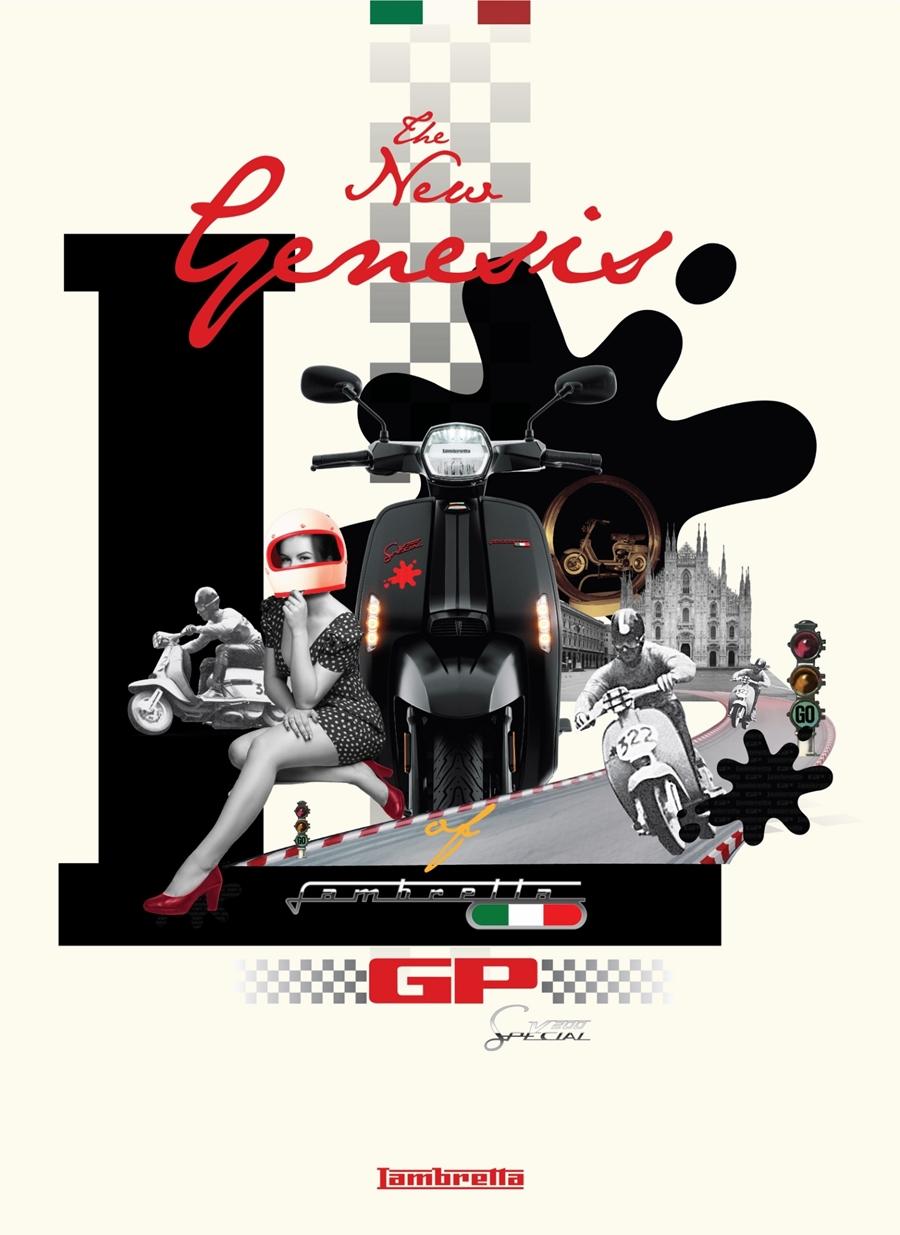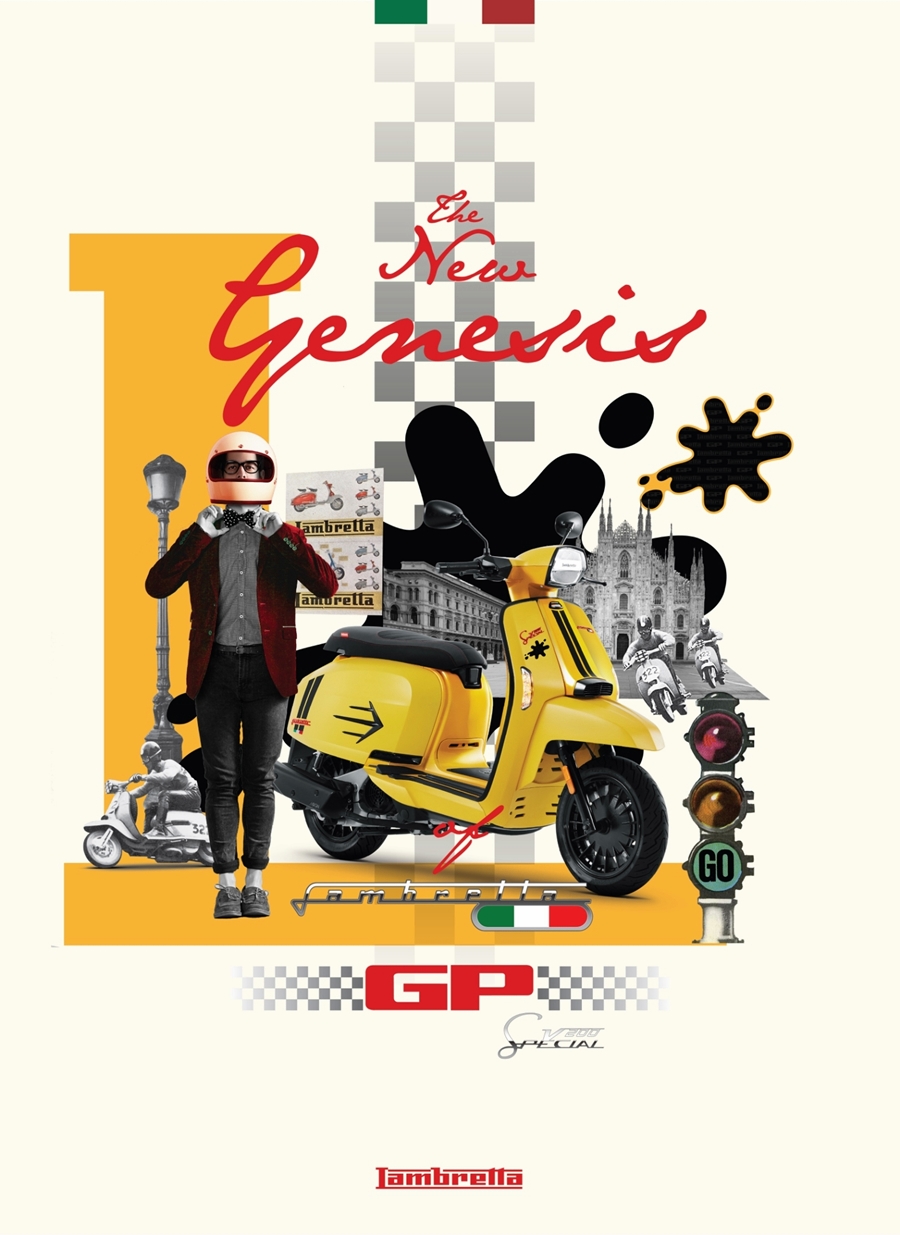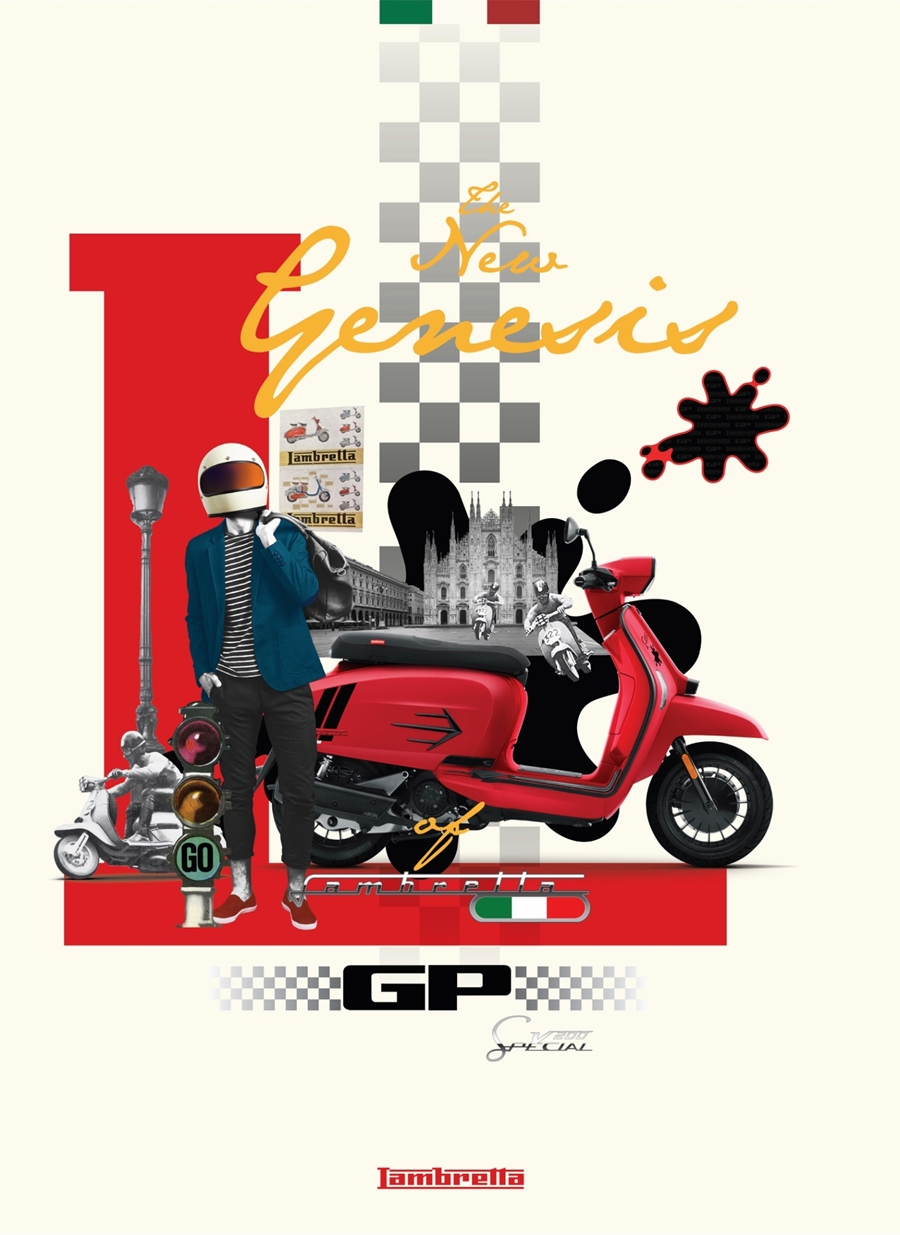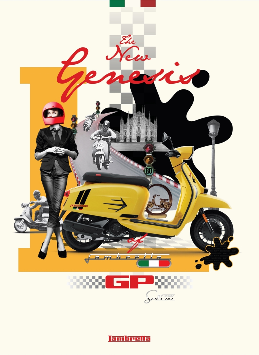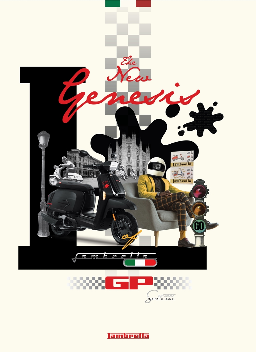 Lambretta (แลมเบรตต้า) แบรนด์สกู๊ตเตอร์ระดับตำนานตัวจริง สัญชาติอิตาลี ที่มีประวัติยาวนานกว่า 73 ปี จัดเซอร์ไพรส์ส่งท้ายปี ด้วยการเปิดตัวรถ "Lambretta V200 GP" ในคอนเซ็ปต์ The New Genesis of GP การกลับมาของตำนาน GP โดยในส่วนของการออกแบบรถรุ่นนี้ ได้มีการหยิบยกเอาตำนานอันโด่งดังของรถ Lambretta GP หรืออีกชื่อหนึ่งคือ DL มาถ่ายทอดเอาไว้ในการออกแบบรถรุ่น Lambretta V200 GP โดยจุดเด่นที่ได้นำมาถ่ายทอดในรถรุ่นนี้ ได้แก่ เอกลักษณ์ของบังโคลน แบบ Fix Fender และ สัญลักษณ์ Ink Splash