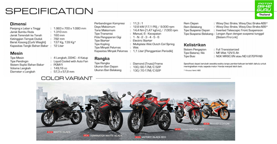 ส่วนในเรื่องของเครื่องยนต์ยังเป็นเครื่องยนต์ขนาด 149.16 ซีซี PGM-FI 4 วาล์ว ระบายความร้อนด้วยน้ำ เกียร์ 6 สปีด น้ำหนักตัวเพิ่มจาก 135 เป็น 137 ระบบเบรคเป็นดิสก์เบรค หน้า-หลัง พร้อม ABS (ABS หน้า-หลัง จะมีในรุ่น MotoGP Edition) ถือว่าจัดมาให้จุกๆ กับรุ่น All New ที่ขายในอินโด และวางจำหน่าย อยู่ 3 รุ่น ในราคาเริ่มต้น Rp.28,127,000 หรือคิดเป็นเงินไทยราวๆ 60,172 บาท