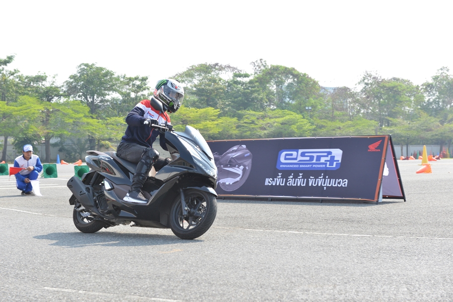เส้นทางการทดสอบครั้งนี้ได้ขับเต็มรอบ พร้อมผ่านและจอดสถานีทดสอบระบบ HSTC (Honda Selectable Torque Control) หรือ แทรคชันคอนโทรล ซึ่งถูกติดตั้งใน All New PCX160 เป็นรุ่นแรกของคลาสนี้ ทำให้ได้สัมผัสประสบการณ์จากเทคโนโลยีช่วยป้องกันล้อหมุนฟรีและลื่นไถลได้อย่างชัดเจน