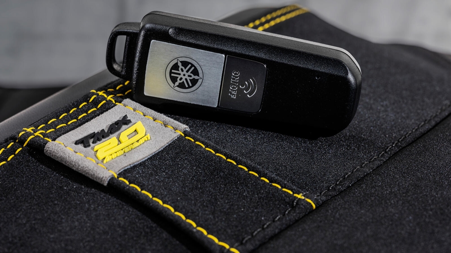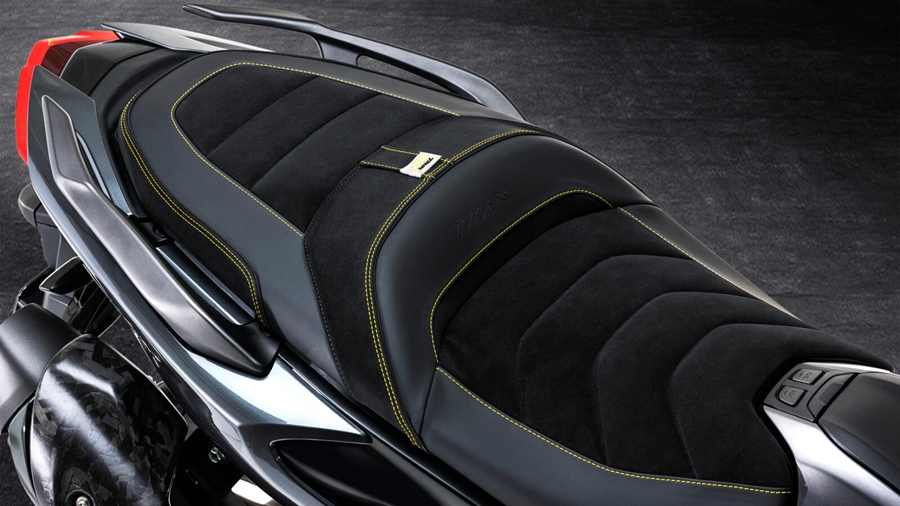 เบาะนั่งก็ต่างจาก TMax รุ่นปัจจุบัน เป็นแบบสปอร์ตเดินด้ายเหลืองตัด พร้อมลวดลายกราฟฟิกบอกความพิเศษของรุ่นและเพลทบอกคันที่ผลิตจากทั้งหมด 560 คัน