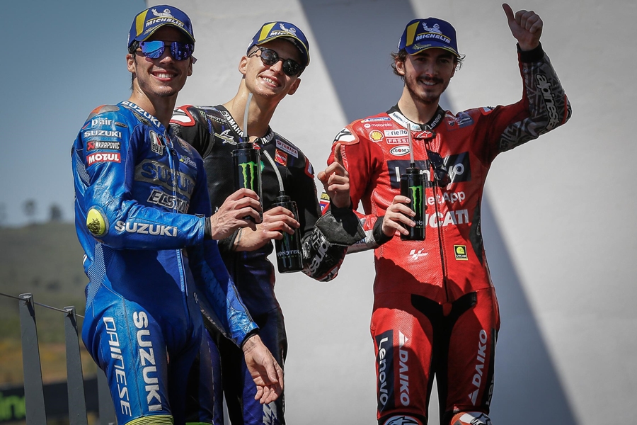 Fabio Quartararo นักแข่งจาก Monster Energy Yamaha MotoGP ยังคงแสดงผลงานได้เป็นอย่างดีหลังคว้าชัย 2 สนามติดจากการแข่งขันในรายการ Grande Premio 888 de Portugal ที่สนาม Algarve International Circuit โดยมี Francesco Bagnaia จาก Ducati Lenovo Team เป็นอันดับ 2 และอันดับ 3 เป็นของ Joan Mir จาก Suzuki Ecstar Team ด้าน Marc Marquez ยอดขักขี่จาก Repsol Honda Team ที่กลับมาทำการแข่งขันหลังจากหยุดขี่ไปนานถึง 265 วันสามารถจบการแข่งขันได้ในอันดับที่ 7