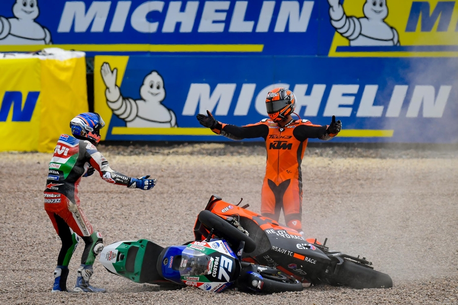การแข่งขันผ่านไปจนรอบรอบที่ 4 นับเป็นหายนะสำหรับ Danilo Petrucci จาก Tech 3 KTM Factory Racing และ Alex Marquez จาก LCR Honda Castrol เมื่อทั้งคู่เกิดชนกันที่โค้งที่ 1 ในรอบต่อมา Lorenzo Savadori จาก Aprilia Racing Team Gresini ก็ประสบอุบัติเหตุในโค้งที่ 10