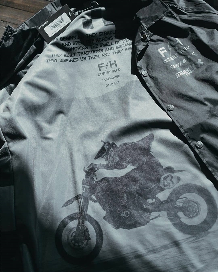 ในประเทศไทย “Scrambler Ducati Desert Sled Fasthouse” รุ่นนี้ยังมี Apparel ที่เป็นดีไซน์เฉพาะของรุ่นของตัวเอง โดยได้รับความร่วมมือจาก Fasthouse แบรนด์เสื้อผ้าชื่อดังในสหรัฐอเมริกา ในการออกแบบเสื้อยืดแขนสั้น เสื้อยืดแขนยาว แจ็คเก็ต และหมวกกันน็อค อีกด้วย