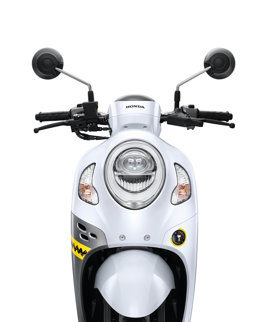 และ Charlie Brown อย่างเด่นชัด เท่ทุกมุมมอง ด้วยลวดลายที่ไม่เหมือนใคร ด้านหนึ่งเป็นการ์ตูน Snoopy ที่มาในชุดนักบินมาดเท่ และอีกด้านหนึ่งเป็นเพื่อนซี้คู่ใจอย่าง Charlie Brown เสริมความเท่ด้วยการเล่นแถบสีเหลือง แดง น้ำเงิน บนพื้นสีขาวของตัวรถ พร้อมกับบ่งบอกความเป็นลิมิเต็ดด้วยแบดจ์ Scoopy x Snoopy ผสานความสนุกและความกวน Scoopy ไอคอนรถจักรยานยนต์ที่เต็มไปด้วยความสนุก และ Snoopy ไอคอนการ์ตูนที่เป็นสัญลักษณ์ของความกวน หลุดกรอบจากการ์ตูน 4 ช่องของหนังสือพิมพ์อเมริกัน ส่งมอบความมันส์