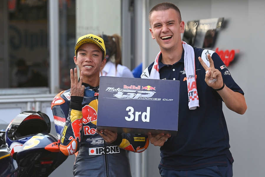 ก๊องส์-ธัชกร บัวศรี ยอดนักบิดดาวรุ่งจากโครงการ "ฮอนด้า เรซ ทู เดอะ ดรีม" สร้างผลงานกระหึ่มเวทีดาวรุ่งชิงแชมป์โลก ควบรถแข่งหมายเลข 5 ผงาดคว้าอันดับ 3 ในเรซแรก ธัชกร ยังคงทำผลงานโดดเด่นคว้ากริดสตาร์ทอันดับ 5 มาครอง ในเกมที่ต้องดวลกับสุดยอดดาวรุ่งจากทั่วโลกกว่า 25 คน ชิงชัยกันทั้งสิ้น 17 รอบสนามอย่างไรก็ดี ธัชกร ที่เตรียมตัวมาอย่างหนัก สามารถพลิกสถานการณ์กลับมาขึ้นโพเดี้ยมได้สำเร็จ ด้วยการบิดเข้าป้ายในอันดับ 3 ด้วยเวลา 28 นาที 30.800 วินาที