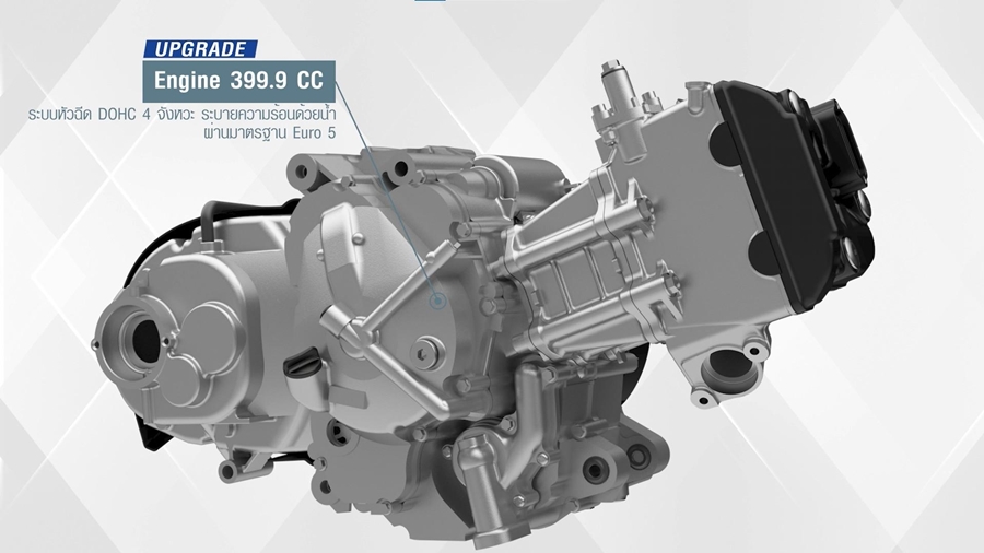 นอกจากนี้ยังได้อัพเกรดทางเทคโนโลยี ด้วยการใช้ระบบจุดระเบิดแบบหัวเทียนคู่ และแผงมาตรวัดยังได้เพิ่มฟังก์ชันการรวมถึงการพัฒนาเครื่องยนต์ 400 ซีซี 4 จังหวะ DOHC สูบเดียว ระบบหัวฉีด ระบายความร้อนด้วยน้ำพร้อมคันเร่งแบบใหม่ ที่ทำให้การขับขี่ในรอบสูงสามารถทำได้ดีมากขึ้นชิ้นส่วนเครื่องยนต์ต่างๆ ที่ปรับปรุงมาใหม่ เช่น ฝาสูบ ลูกสูบ หัวฉีด รวมไปถึงการเผาไหม้ที่ดีขึ้น
