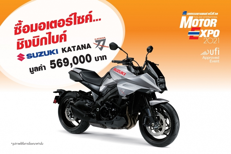 4. ซื้อมอเตอร์ไซค์...ชิงบิกไบค์ เมื่อจองหรือซื้อรถจักรยานยนต์ใหม่ในงาน มีสิทธิ์ชิงรางวัล รถจักรยานยนต์ SUZUKI BIG BIKE รุ่น KATANA ราคา 569,000 บาท จำนวน 1 รางวัล