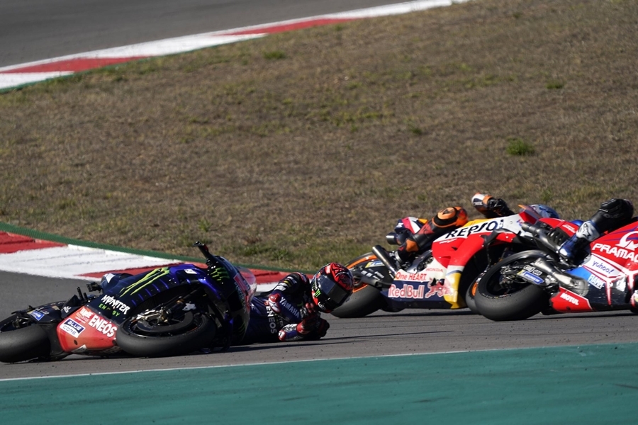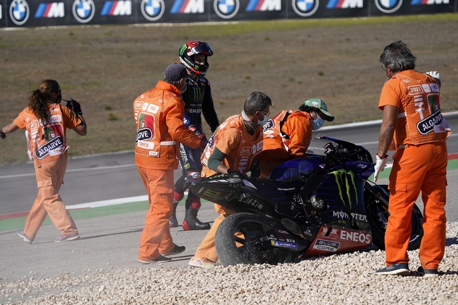 เมื่อเหลืออีก 5 รอบการแข่งขัน Quartararo ก็พลาดล้มจนต้อง DNF เป็นครั้งแรกของปีนี้ที่เขาต้องออกจากการแข่งขัน จากนั้นก็เป็น Miguel Oliviera นักบิดเจ้าถิ่น จาก Red Bull KTM Factory Racing กับ Iker Lecuona จาก Tech 3 KTM Factory Racing เกิดอับัติเหตุที่โค้ง 13 ทำให้กรรมการตีธงแดงยุติการแข่งขันเพราะผ่าน 75% ของการแข่งขัน ภายหลังทั้ง 2 ได้สติและลุกขึ้นยืนได้เอง