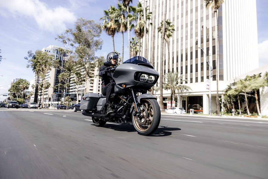 รถมอเตอร์ไซค์อันโฉบเฉี่ยวอย่างรุ่น Road Glide ST แสดงถึงสไตล์ของรถมอเตอร์ไซค์แข่ง อย่าง Screamin Eagle Factory และเสริมความดุดันด้วยความแรงของเครื่องยนต์ Milwaukee-Eight 117 องค์ประกอบของสไตล์แบบตะวันตกและตัวรถสีมืด-บรอนซ์ทำให้รถมอเตอร์ไซค์คันนี้ดูโดดเด่นออกมาจากกลุ่ม ความสะดวกสบายของการขับขี่และแฟร์ริ่งแบบทรงฉลามดึงดูดความประทับใจของนักขับขี่ที่ต้องการขับโฉบเฉี่ยวอย่างว่องไวบนถนนเลนกว้าง แฟร์ริ่งทรงจมูกฉลามแบบแอโรไดนามิกที่มีช่องระบายอากาศแบบแยกส่วนคงที่ (Fixed) สามช่องช่วยลดการกระแทกของศีรษะผู้ขับขี่เมื่อขับรถ แฟร์ริ่งอยู่ใต้กระบังลมสีเข้มระดับต่ำและครอบคลุมส่วนไฟหน้าแบบ Daymaker LED ที่ส่องแสงสว่างออกมาตามเส้นทางขับขี่ การรวมระหว่างการ์ดเครื่องยนต์แบบเตี้ยและถังน้ำมันเข้าด้วยกันเป็นการผสมผสานดีไซน์ที่ลงตัว