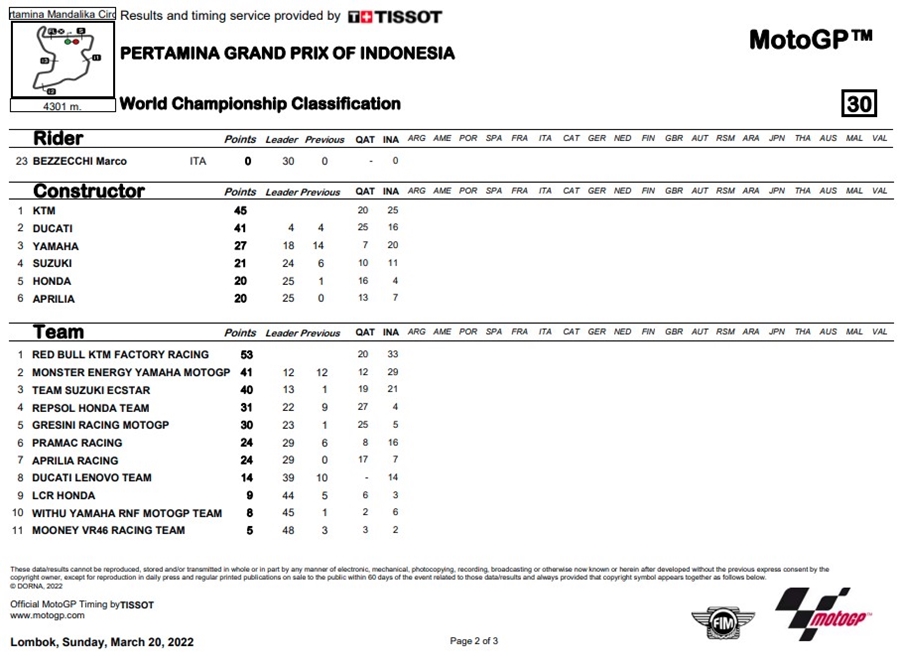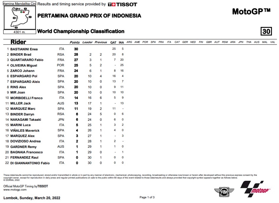 การแข่งขัน MotoGP มาถึงสนามที่ 2 ในรายการ Pertamina Grand Prix of Indonesia ในสนาม Pertamina Mandalika Circuit และเป็นครั้งเป็นครั้งแรกในรอบ 25 ปี ที่อินโดนีเซียได้จัดการแข่งขันรายการนี้อีกครั้ง