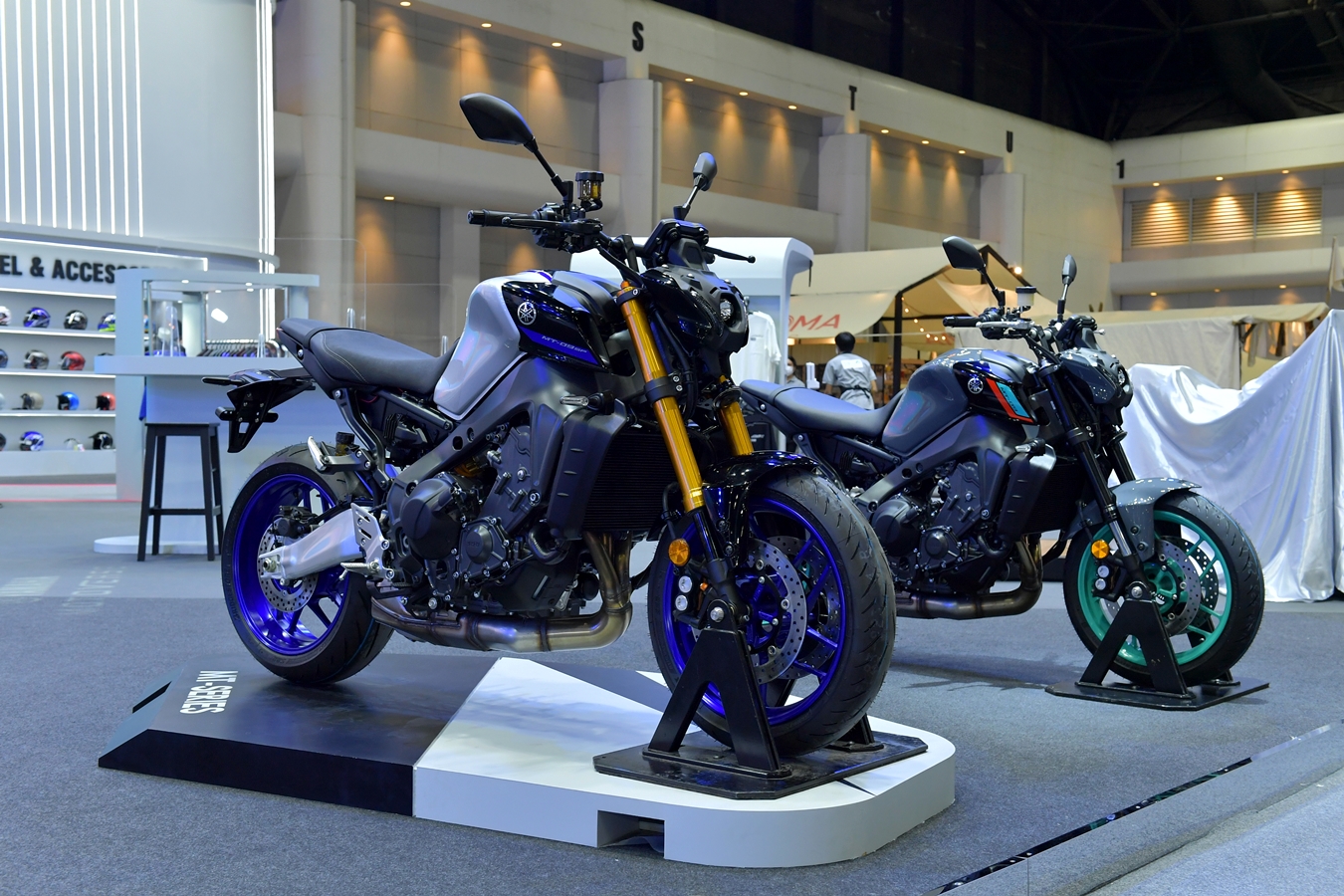 YAMAHA NEW MT-09 และ YAMAHA NEW MT-09 SP กลุ่มเนคเกต แบบ Hyper Naked ที่มียอดขายมากกว่า 50,000 คันในยุโรป ที่มีเอกลักษณ์ของเครื่องยนต์ที่มี Torque สูง แต่ขับขี่ง่าย YAMAHA NEW MT-09 มาด้วยโฉมหน้าดีไซน์ใหม่ทั้งหมด ไฟหน้า LED แบบสองฟังก์ชั่นขนาดกะทัดรัด เครื่องยนต์ใหม่ ขนาด 889 ซีซี เปิดตัวพร้อม 3 สีใหม่ Cyan Strom (สีเทา), Icon Blue (สีน้ำเงิน) และ Tech Black (สีดำ) ในราคาแนะนำ 439,000 บาท YAMAHA NEW MT-09 SP เสริมความมั่นใจด้วยระบบครูซคอนโทรล ระบบควบคุมความเร็วอัตโนมัติ ระบบกันสะเทือนหน้า KYB® (คายาบา) ระดับพรีเมียมโช้ค หลัง Öhlins เปิดตัวพร้อมสีใหม่ Icon Performance (สีเทาดำ) ราคาแนะนำ 479,000 บาท