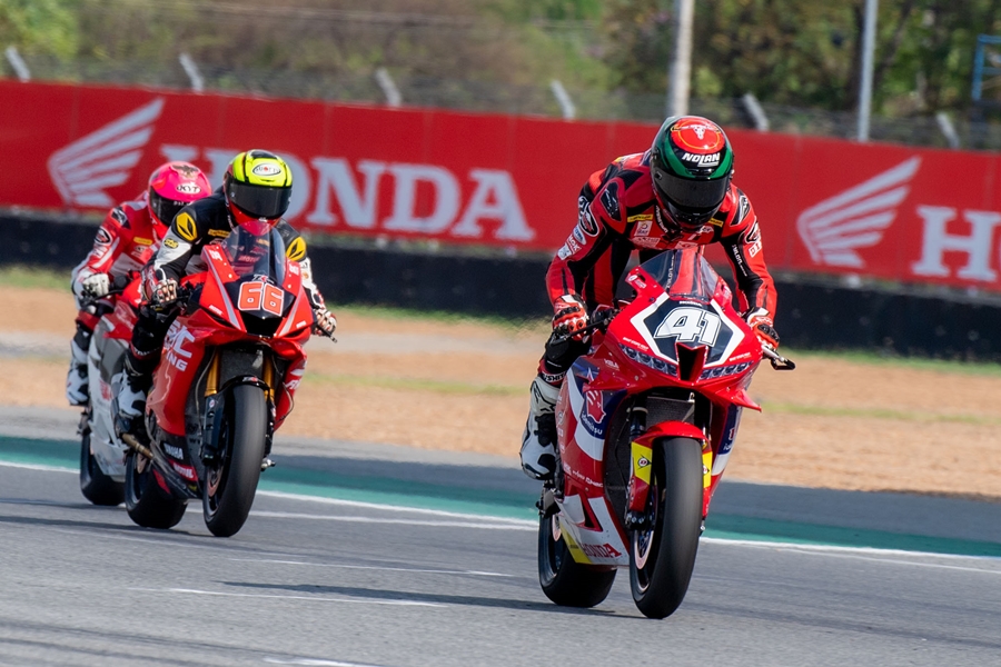 ขณะ ชิพ-นครินทร์ อธิรัฐภูวภัทร์ จาก ฮอนด้า เรซซิ่ง ไทยแลนด์ คว้าโพเดี้ยมอันดับ 2 ในรุ่น ซูเปอร์สปอร์ต 600 ซีซี ที่ สนามช้าง อินเตอร์เนชั่นแนล เซอร์กิต จ.บุรีรัมย์