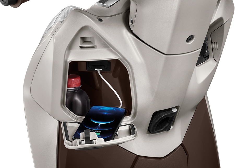 ช่องเก็บของด้านหน้าทรงสูง 12 ซม. มาพร้อมช่องชาร์จไฟสำรองแบบ USB Type A รองรับไลฟ์สไตล์ยุคดิจิทัล ถังน้ำมันด้านหน้าขนาดใหญ่ 6 ลิตร เติมน้ำมันง่ายโดยไม่ต้องเปิดเบาะและไม่ต้องลงจากรถ