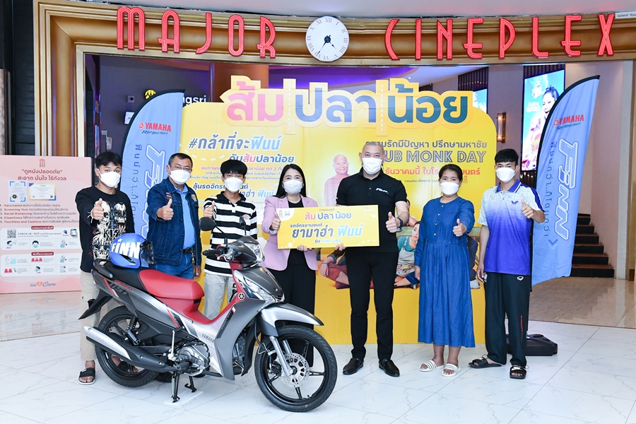 นายพลัฏฐ์ ประวีร์ชานนท์ ผู้จัดการทั่วไปฝ่ายการตลาดกลุ่มรถสปอร์ตและกลุ่มรถครอบครัว บริษัท ไทยยามาฮ่ามอเตอร์ จำกัด ร่วมกับ คุณปัญชลีย์ นิธิจิระโรจน์ กรรมการผู้จัดการ และผู้อำนวยการผลิต บริษัท เอ็ม เทอร์ตี้ไนน์ จำกัด (M39) ถ่ายภาพและแสดงความยินดีกับ 5 ผู้โชคดีที่ได้รับรถจักรยานยนต์ ยามาฮ่า ฟินน์ จากการส่งตั๋วชมภาพยนตร์เรื่อง ส้มปลาน้อย ที่เข้ามารับชม ในเครือ เมเจอร์ซีนีเพล็กซ์ ทุกสาขาทั่วประเทศ ระหว่างวันที่ 30 ธันวาคม 2564 – 31 มกราคม 2565