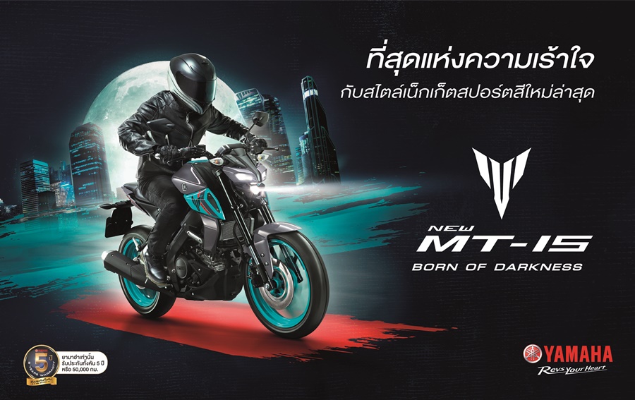 NEW YAMAHA MT-15…BORN OF DARKNESS มาพร้อมสีสัน 3 เฉดสีใหม่! คือ สีเทา Metallic Gray, สีน้ำเงิน Racing Blue และ สีดำ Matt Black โดยสีของล้อแม็กและลายกราฟฟิคจะดีไซน์ให้เป็นสีเดียวกัน พร้อมวางจำหน่ายในราคา 101,000 บาท ตั้งแต่วันนี้ที่ยามาฮ่า สแควร์ และร้านผู้จำหน่ายรถจักรยานยนต์ยามาฮ่าทั่วประเทศ สอบถามรายละเอียดเพิ่มเติมได้ที่ Yamaha Call Center โทร. 02-263-9999 ติดตามข้อมูลข่าวสารทางออนไลน์ได้พร้อมอัปเดตความเคลื่อนไหวของยามาฮ่าได้ที่ : www.yamaha-motor.co.th, Facebook : Yamaha Society Thailand, Instagram: @Yamaha Society Thailand และ Youtube: Yamaha Society Thailand