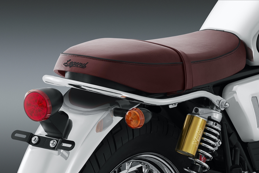 อีกหนึ่งสิ่งที่สำคัญสำหรับการเดินทาง ก็คือเรื่องช่วงล่าง ซึ่ง NEW LEGEND 250TWIN III โฉมใหม่นี้ ก็จัดเต็มของติดรถมาให้ไม่ธรรมดาเลยทีเดียว ด้วยระบบกันสะเทือนหน้าแบบหัวกลับ Upside Down ดีไซน์กระบอกโช้กสีทอง พร้อม โช้กอัพหลังคู่ คุณภาพระดับสากลจากแบรนด์ YSS ในรุ่น G-Series โช้กแก๊ส แบบเเยกห้องระหว่างน้ำมันเเละเเก๊ส แฝงดีไซน์ความเท่ระดับตำนาน ด้วยการออกแบบตัวสปริงโช้กสีโครเมียมตัดกับ Sub Tank สีทอง เป็นดีไซน์ความเก๋าที่พร้อมตอบโจทย์การใช้งานอย่างเต็มสมรรถนะ ด้วยการเคลื่อนที่ของโช้กที่เป็นไปอย่างนุ่มนวล และยังสามารถปรับระยะพรีโหลดได้ โดยการปรับแบบเกลียวหรือที่เรียกว่า ระบบ Threaded spring preload จึงสามารถปรับให้รองรับกับการใช้งานของผู้ขับขี่ได้อย่างเต็มประสิทธิภาพ