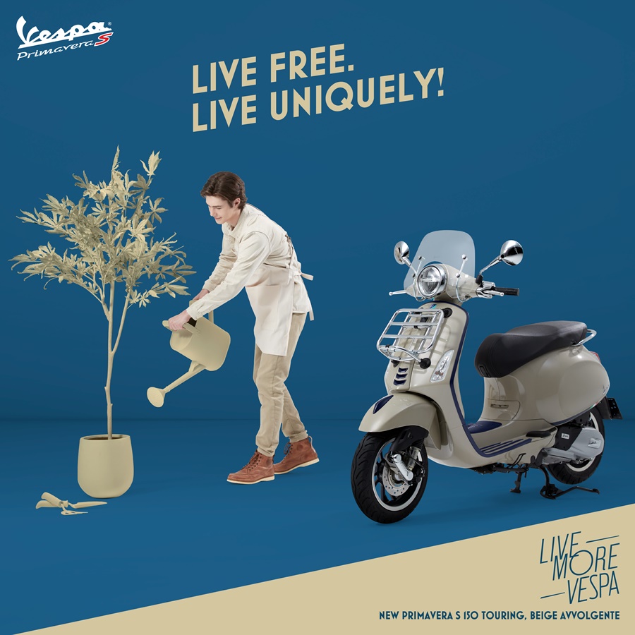 และล่าสุด เวสป้าเพิ่มอรรถรสการขับขี่ให้ดึงดูดใจไปอีกขั้นกับ Vespa Primavera S 150 i-Get ABS Touring เติมเต็มทุกอารมณ์การขับขี่สไตล์ทัวร์ริ่ง มาพร้อมเอกลักษณ์กับไฟทรงกลมสุดคลาสสิก เสริมลุคใหม่ให้โดดเด่นด้วยการตกแต่งสีน้ำเงิน บริเวณคิ้วตัวถังด้านหน้า บังแตร บังโคลนหน้า ล้อแม็ก ที่พักเท้า ตัดกับสีตัวรถอย่างลงตัว และสติกเกอร์ข้างตัวถังพร้อมด้วยดีไซน์ธงชาติอิตาลี พร้อมให้คุณออกไปสร้างเรื่องราวใหม่ ๆ ที่บ่งบอกความเป็นคุณได้ตลอดเส้นทาง กับ 3 เฉดสีล่าสุด