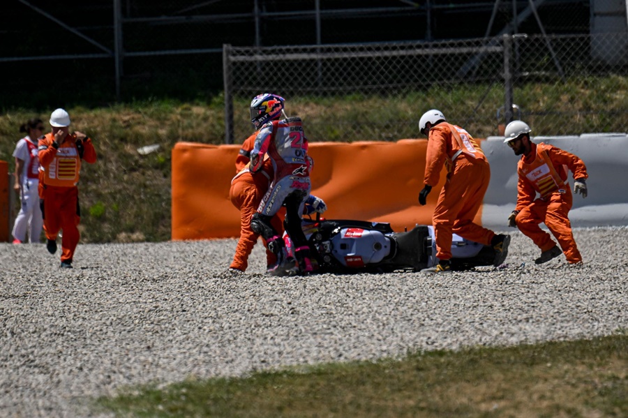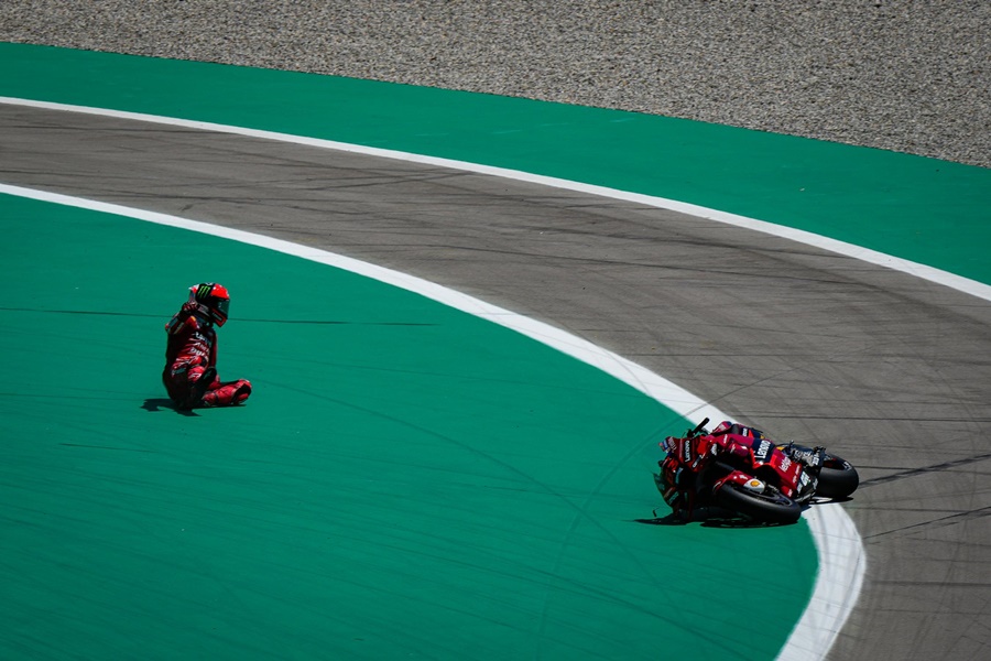 และ Enea Bastianini จาก Gresini Racing MotoGP อดีตผู้นำคะแนนสะสมพลาดจากการถูกกดดันจาก Maverick Vinales จาก Aprilia Racing ทำให้ Bastianini เกิดผิดพลาดและล้มลงไปในโค้งที่ 5 และในรอบเดียวกันก็เป็น Fabio Di Giannantonio ทีมเมทของ Bastianini ที่ต้องออกจากการแข่งขันไปในโค้งที่ 13 ถือว่าเป็นฝันร้ายของ Gresini Racing MotoGP ที่นักแข่งทั้ง 2 ต้องออกจากการแข่งขันไป