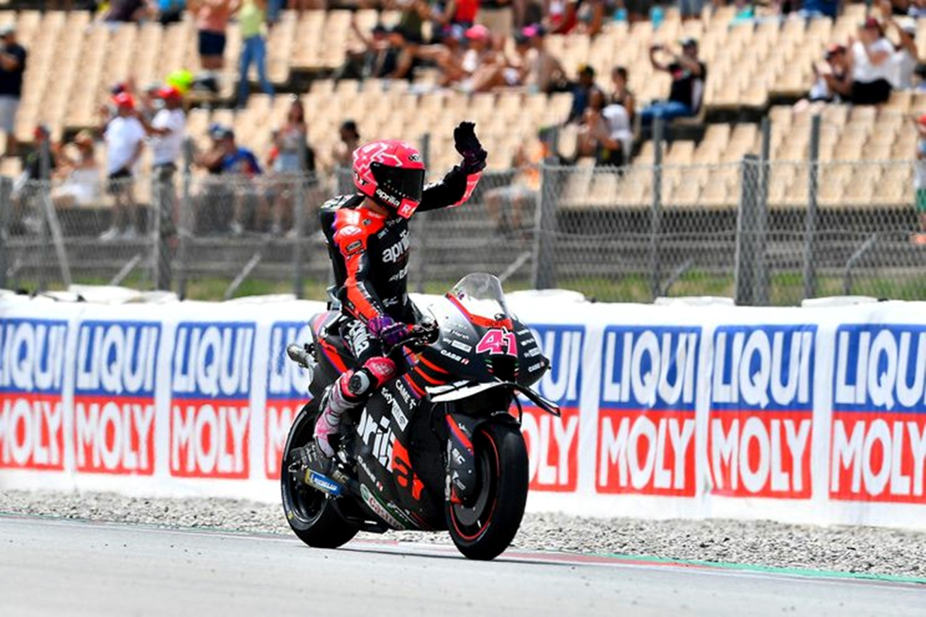 อเลช เอสปาการ์โร แสดงผลงานได้อย่างโดดเด่นตลอดสุดสัปดาห์ที่ผ่านมาในคาตาลุณญ่า แต่ในช่วงแข่งต้องยอมรับความแรงที่เหนือกว่าของ ฟาบิโอ กวาร์ตาราโร่ แชมป์โลกคนล่าสุดจากทีมยามาฮ่าคนเดียว แต่เกิดเหตุการณ์ที่ไม่มีใครคาดคิดในรอบสุดท้าย เมื่อเอสปาร์กาโรลดความเร็วลงเสมือนรถมีปัญหา แต่ก็โบกมือให้กับแฟนๆ ในสนามตรงโค้ง 1 พอเริ่มรู้ตัวว่านักแข่งคนอื่นทยอยแซงผ่านไปด้วยความเร็วต่อเนื่องก็รู้ว่ามันไม่ใช่แล้ว จึงเร่งรถกลับเข้าแทร็คแข่งต่อจนจบจริงๆ แต่อันดับที่ควรอยู่ที่ 2 หล่นมาอยู่ที่ 5 หลังจบการแข่ง ทำให้เจ้าตัวทำใจไม่ได้เข้าไปเก็บตัวในพิตทันที