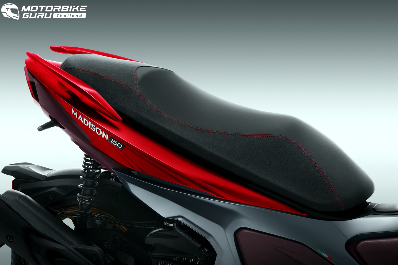 การเปิดตัวครั้งแรกในไทยด้วยโมเดลใหม่ล่าสุด MADISON 150 สกู๊ตเตอร์สปอร์ตพรีเมียม คลาส 150 ซีซี ถ่ายทอด DNA อิตาเลียนดีไซน์ โฉบเฉี่ยว สปอร์ตเร้าใจ ติดตั้งเครื่องยนต์ขนาด 150 ซีซี 4 จังหวะ 4 วาล์ว เทคโนโลยีหัวฉีด (Bosch EFI) ระบายความร้อนด้วยนํ้า ระบบส่องสว่างไฟหน้า ไฟท้าย และรอบคันเป็นแบบฟูล LED ด้านหน้าจอเป็นแบบ LCD DISPLAY DYNAMIC MOTION เติมสีสันให้ชีวิตตั้งแต่เริ่มบิดสตาร์ท พร้อมความพรีเมียมกับดีไซน์รีโมทกุญแจ ที่เสริมการปลดล็อคอีกขั้นก่อนบิดสตาร์ทออกตัว มั่นใจในทุกการหยุดด้วยดิสก์เบรกหน้า-หลัง พร้อมระบบ CBS ถังน้ำมันขนาดใหญ่จุได้ถึง 10 ลิตร ตอบโจทย์ด้านการใช้งานเดินทาง และมี USB CHARGING SOCKET สำหรับชาร์จอุปกรณ์พกพา