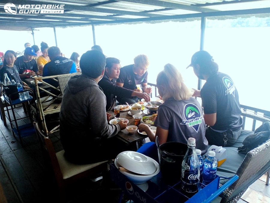 แล้วจึงไปพักรับประทานอาหารกลางวันที่ร้านอาหารชวนมา ริมแม่น้ำบางประกงที่อยู่ใกล้ ๆ กับวัดหลวงพ่อโสธร หลังจากอิ่มหนำกับอาหารเลิศรส แล้วชาว Dominar Rides ก็มุ่งหน้ากลับที่โชว์รูมบาจาจของทาง บริษัท เจ.ซี.จักรชัย จำกัด