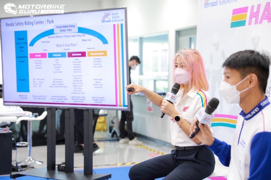 นางจุฑามาศ อินปริงกานันท์ ผู้จัดการทั่วไป สายงานส่งเสริมการขับขี่ปลอดภัย และกีฬายานยนต์ บริษัท ไทยฮอนด้า จำกัด กล่าวว่า “ปัญหาเรื่องอุบัติเหตุจราจรเป็นปัญหาใหญ่ในปัจจุบัน โดยเฉพาะในหัวเมืองใหญ่ที่มีการจราจรพลุกพล่าน จากการศึกษากรณีอุบัติเหตุทางถนนที่เกิดขึ้นในประเทศไทย เราพบว่าพื้นฐานความคิดส่วนหนึ่งของคนไทยต่อรถจักรยานยนต์ คือ ‘ถ้าขี่จักรยานได้ก็ขับมอเตอร์ไซค์ได้’ และ ‘แค่หัดขับจะให้ใครสอนก็ได้’ ซึ่งฮอนด้าในฐานะที่เป็นผู้นำในการขับเคลื่อนความรู้ขับขี่ปลอดภัยในประเทศไทย เราอยากแบ่งปันความรู้ ทักษะการขับขี่ที่ถูกต้องให้กับผู้ใช้รถจักรยานยนต์ไทย อยากให้เปลี่ยนความคิดมาให้ความสำคัญกับการเรียนรู้ทักษะที่ถูกต้อง”