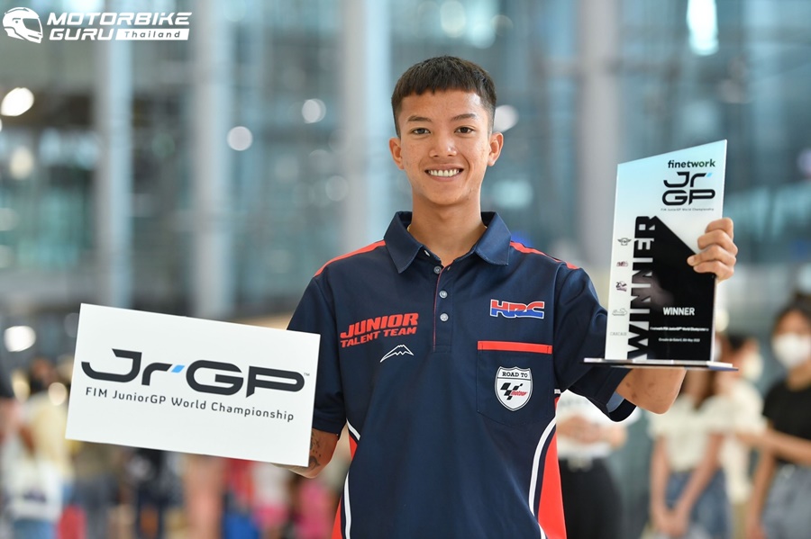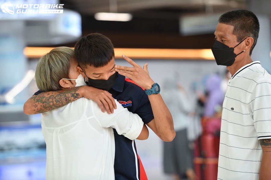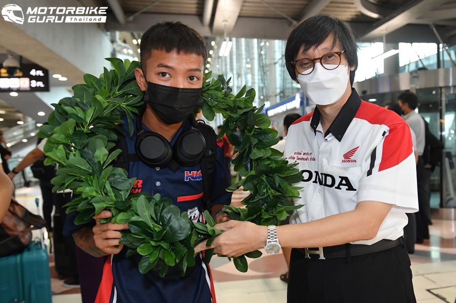ล่าสุดนักบิดดาวรุ่งชาวไทยเดินทางถึงประเทศไทยเป็นที่เรียบร้อยแล้วในช่วงบ่ายของวันพุธ 20 กรกฎาคมที่ผ่านมา ที่ ท่าอากาศยานสุวรรณภูมิ โดยมีคณะผู้บริหาร บริษัท ไทยฮอนด้า จำกัด นำโดย ดร.อารักษ์ พรประภา รองประธานกรรมการ และคุณจุฑามาศ อินปริงกานันท์ ผู้จัดการทั่วไปส่วนงานกีฬายานยนต์และส่วนงานขับขี่ปลอดภัย ให้การต้อนรับอย่างอบอุ่น
