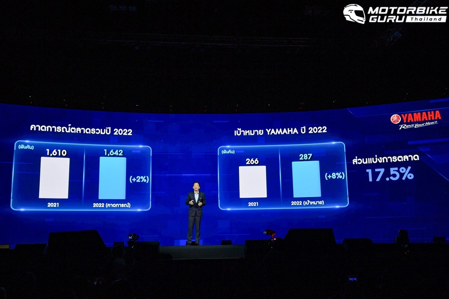 โดยในส่วนของยอดจดทะเบียนรถจักรยานยนต์ยามาฮ่าของปี 2562 จาก 133,000 คัน เพิ่มเป็น 141,000 คัน มีตัวเลขเพิ่มขึ้นถึง 5.8% สำหรับการคาดการณ์ตัวเลขของตลาดรวมในปี 2565 เปรียบเทียบกับปี 2564 คาดว่าจะเพิ่มขึ้น 2% จากเดิม 1.610 ล้านคัน เป็น 1.642 ล้านคัน โดยเป้าหมายของยามาฮ่าในปีนี้ อยู่ที่ 287,000 คัน และมีเป้าหมายที่จะเพิ่มส่วนแบ่งทางการตลาดเป็น 17.5%