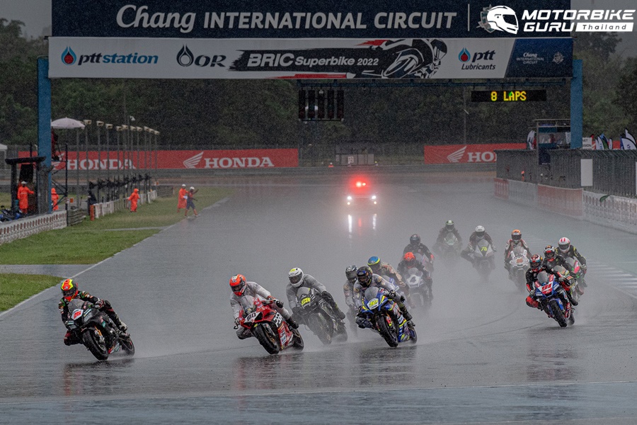 จนมาถึงเรซการแข่งขันจักรยานยนต์ทางเรียบชิงแชมป์ประเทศไทย รายการ โออาร์ บีอาร์ไอซี ซูเปอร์ไบค์ แชมเปี้ยนชิพ 2022 สนาม 3 โดยยังอยู่ในช่วงที่สภาพอากาศแปรปรวนตลอดทั้งวัน ไฮไลต์ของเรซนี้อยู่ในรุ่นใหญ่ที่สุดของประเทศไทยอย่าง ซูเปอร์ไบค์ 1,000 ซีซี ซึ่งต้องดวลกันท่ามกลางฝนที่ตกลงมาอย่างหนัก และต้องลดจำนวนรอบลงเหลือเพียง 8 รอบสนาม