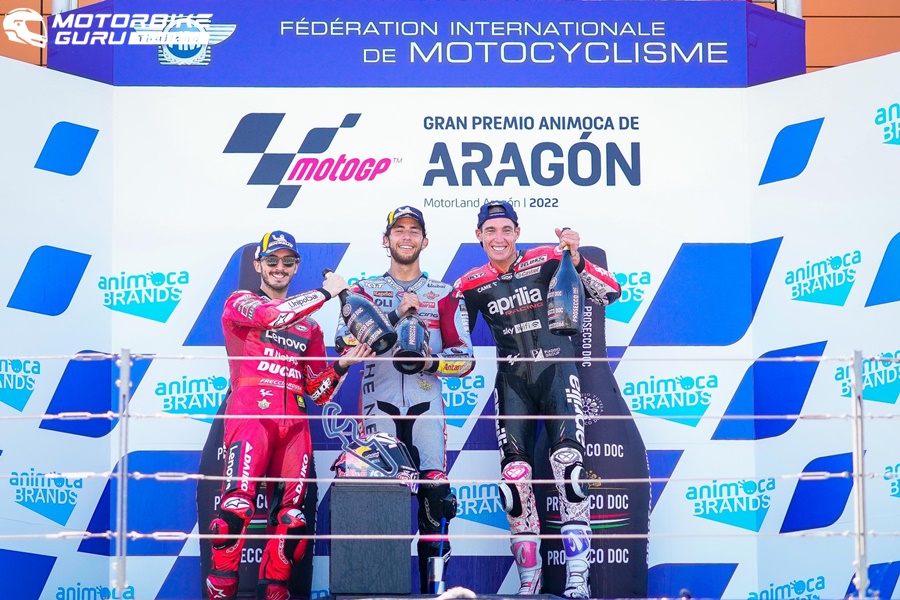 Enea Bastianini จาก Gresini Racing MotoGP สามารถเอาชนะ Francesco Bagnaia จาก Ducati Lenovo Team โดยทิ้งห่างเพียง 0.042 วินาที ในการแข่งขันรายการ Gran Premio Animoca Brands de Aragon