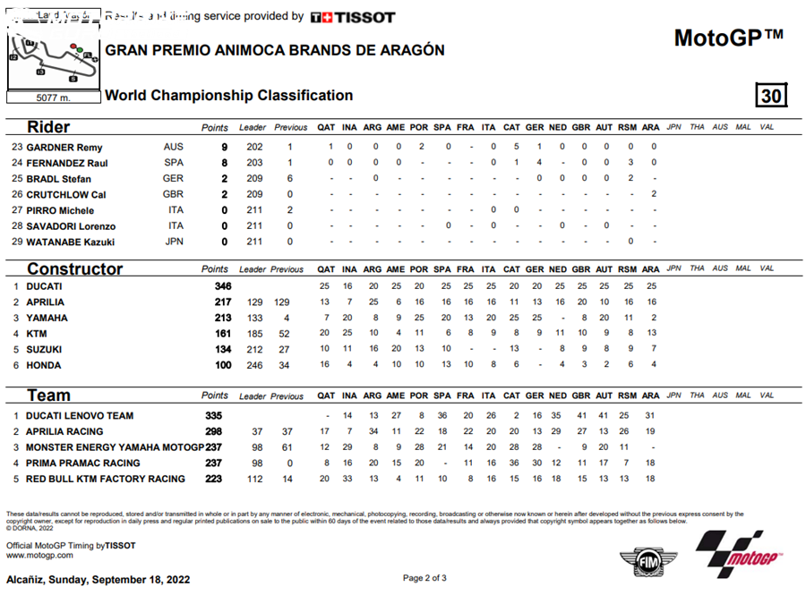 สำหรับสนามถัดไปจะเกิดขึ้นที่ ญี่ปุ่น ที่สนาม Mobility Resort Motegi ในรายการ Motul Grand Prix of Japan เราคงต้องมาลุ้นกันต่อว่าใครจะมีโอกาสคว้าแชมป์ในปีนี้เพราะแต้มเริ่มกลับมาใกล้เคียงกันมากขึ้น แต่สิ่งหนึ่งที่ไม่ต้องลุ้นกันแล้วนั้นก็คือ Ducati นั้นสามารถคว้าแชมป์ประเภทผู้ผลิตไปครองได้แล้วนั่นเอง
