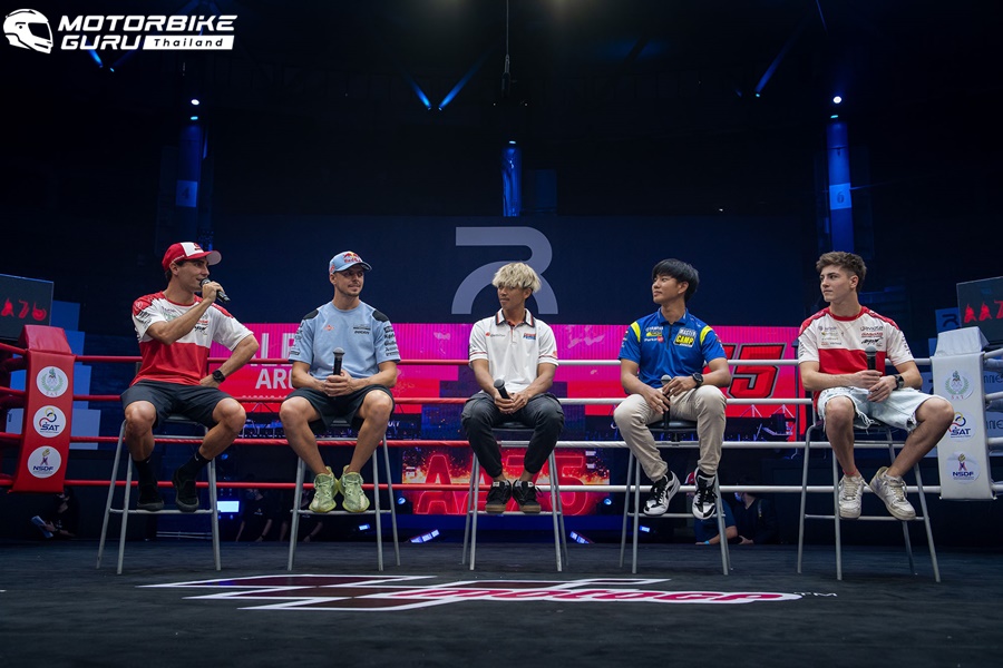 จากนั้นจึงเข้าสู่ช่วงการพูดคุยกับเหล่านักบิด เปิดให้สื่อมวลชนซักถาม โดยมีผู้บริหารจากภาครัฐและเอกชนร่วมให้การต้อนรับและมอบของที่ระลึกเป็นกางเกงมวยไทยที่ปักชื่อนักบิดแต่ละคนเอาไว้ ปิดท้ายด้วยการถ่ายภาพร่วมกัน กิจกรรม Pre-Event สุดคึกคักไปด้วยกองทัพสื่อมวลชน แฟนคลับโมโตจีพี ตัวแทนจากภาครัฐและเอกชน คณะผู้บริหารจากกระทรวงการท่องเที่ยวและกีฬา นำโดย การกีฬาแห่งประเทศไทย, การท่องเที่ยวแห่งประเทศไทย, กองทุนพัฒนากีฬาแห่งชาติ , ภาคเอกชนที่ร่วมสนับสนุน อาทิ บริษัท ปตท. น้ำมันและการค้าปลีก จำกัด (มหาชน) หรือ โออาร์ , บริษัท ไทยเบฟเวอเรจ จำกัด (มหาชน) โดยเครื่องดื่มตราช้าง, บริษัท ไทยฮอนด้า จำกัด, บริษัท ไทยยามาฮ่ามอเตอร์ จำกัด