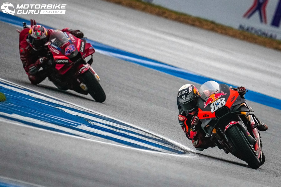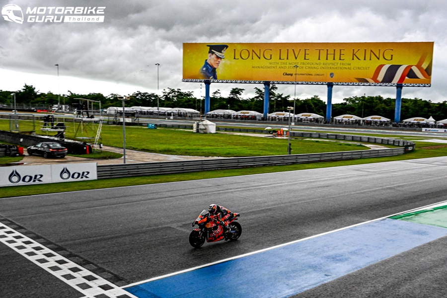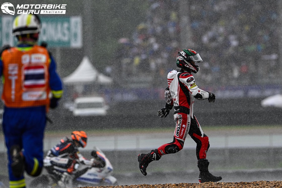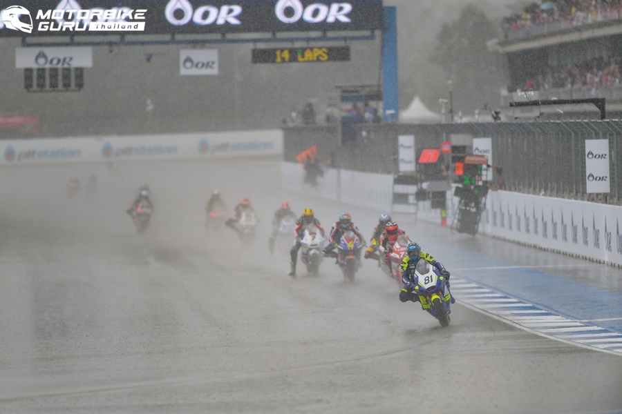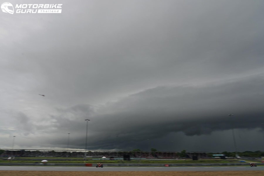 จากสภาพอากาศที่สนาม Chang International Circuit สุดท้าทายเมื่อฝนตกลงมาอย่างต่อเนื่อง บางโค้งแห้ง บางโค้งเปียก ทำให้การแข่งขันใน OR Thailand Grand Prix ดูจะเป็นการแข่งขันที่สุดท้าทาย เพราะมีฝนลงมาทำให้การแข่งขันต้องล่าช้าออกไปเกือบหนึ่งชั่วโมง ก่อนที่การแข่งขันในรุ่น MotoGP จะเริ่มขึ้นในที่สุด แต่ยังเป็นสภาพสนามที่ยังคงเปียกมาก