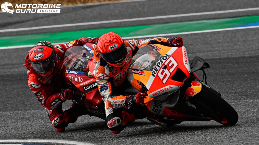 ซึ่ง Marc Marquez ก็พยายามหาจังหวะแซง Bagnaia ที่โค้ง 12 แต่ก็ไม่สำเร็จ ในทางกลับกัน Marc Marquez กลับต้องเสียที่ 4 ให้กับ Zarco ในรอบที่ 20