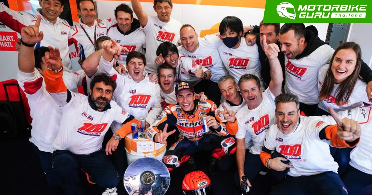 มาร์ค มาร์เกซ เจ้าของรถแข่งหมายเลข 93 แชมป์โลก 8 สมัยจาก เรปโซล ฮอนด้า สร้างสถิติมากมายนับตั้งแต่ขยับขึ้นสู่ โมโตจีพี กับ เรปโซล ฮอนด้า ในฤดูกาล 2013 และในปีแรกก็ผงาดแชมป์โลกพรีเมียร์คลาสมาครองได้อย่างยิ่งใหญ่ หลังจากนั้นเขาใช้เวลาเพียง 7 ฤดูกาลในการคว้าแชมป์โลกพรีเมียร์คลาส 6 สมัย คัมแบ็กคว้าโพเดียมเป็นครั้งแรกในฤดูกาลนี้ หลังฝ่าฟันกับอาการบาดเจ็บอย่างยาวนาน พร้อมฉลองโพเดียมที่ 100 ในพรีเมียร์คลาส เจ้าตัวชี้ เป็นโพเดียมที่สำคัญต่อตัวเองและฮอนด้า นี่คือสัญญาณที่จะนำ ฮอนด้า สู่ความยิ่งใหญ่