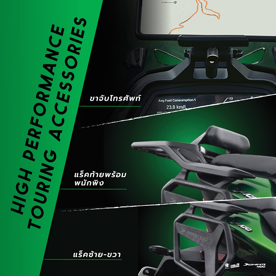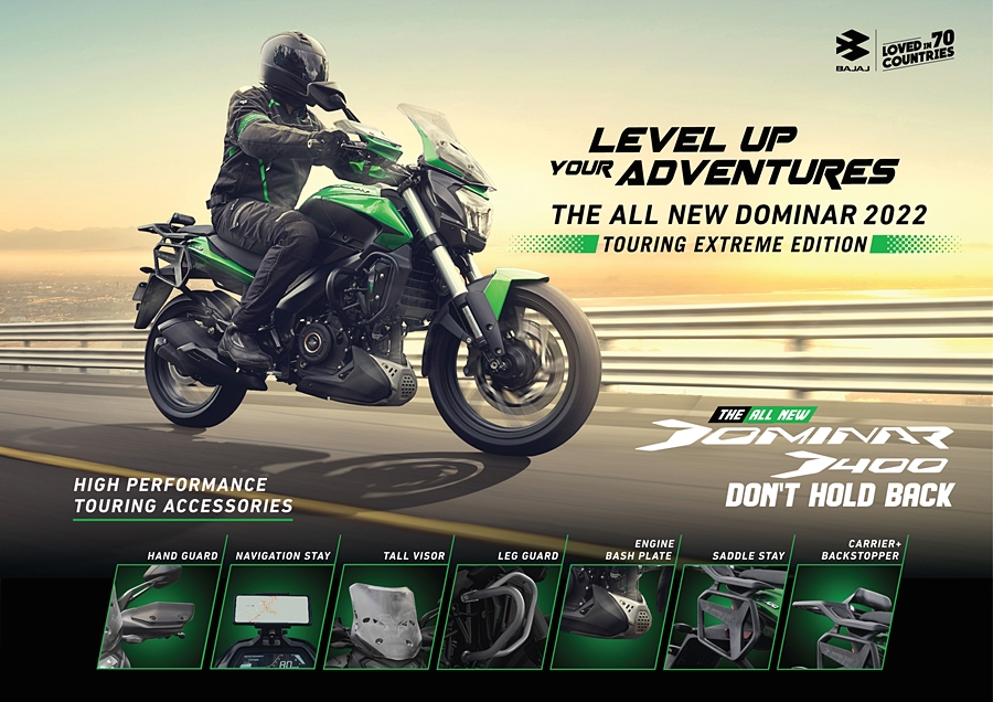 Bajaj Dominar 400 บิ๊กไบค์สปอร์ต Touring พลังสูบเดียวที่แรงบิดตึงมือ นุ่มนวลทุกการขับขี่คุ้มราคามากที่สุดในยุคนี้ ขยับตัวเพิ่งฟังก์ชั่นดันยอดขายด้วยชุดตกแต่งพิเศษ “Touring Extreme Edition” อัดฟังก์ชันพิเศษขาจับโทรศัพท์, การ์ดแคร้ง, การ์ดแฮนด์, แคชบาร์กันล้ม, แร็คซ้ายขวาและแร็คท้ายพร้อมพนักพิง ยกระดับความสปอร์ตอีกขั้น เพิ่มสไตล์ที่โดดเด่นและให้ความสะดวกสบายทุกเส้นทางการขับขี่