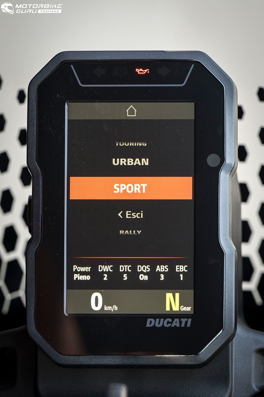 นอกจากดีไซน์ที่โดดเด่นของตัวรถแล้ว แผงมาตรวัดความเร็วแบบ TFT ขนาด 5 นิ้ว ในแนวตั้ง เป็นอีกหนึ่งการออกแบบที่คำนึงถึงลักษณะของการขับขี่ไม่ว่าจะนั่งหรือยืนก็สามารถมองเห็นข้อมูลบนหน้าจอได้อย่างชัดเจน ซึ่งสามารถแสดงผลได้ถึง 2 รูปแบบ 1.) Standard mode 2.) Rally mode (trip master) มาพร้อม 6 โหมดการขับขี่ และมี 2 โหมดที่เพิ่มเติมมา คือ โหมดการขับขี่แบบออฟโรด คือ Enduro และ Rally เพื่อให้การเข้าโค้งเป็นไปได้อย่างใจคิด ผู้ขับขี่สามารถปิด ABS ได้ในโหมดออฟโรด ด้วยปุ่มพิเศษ IMU Assisted traction control อีกด้วย