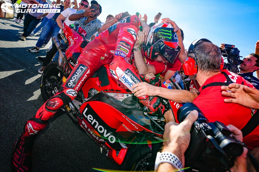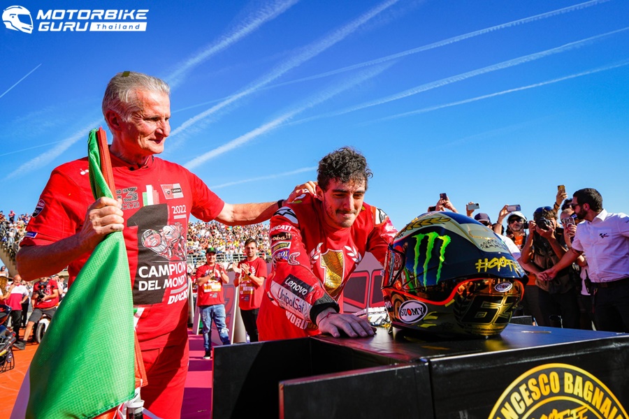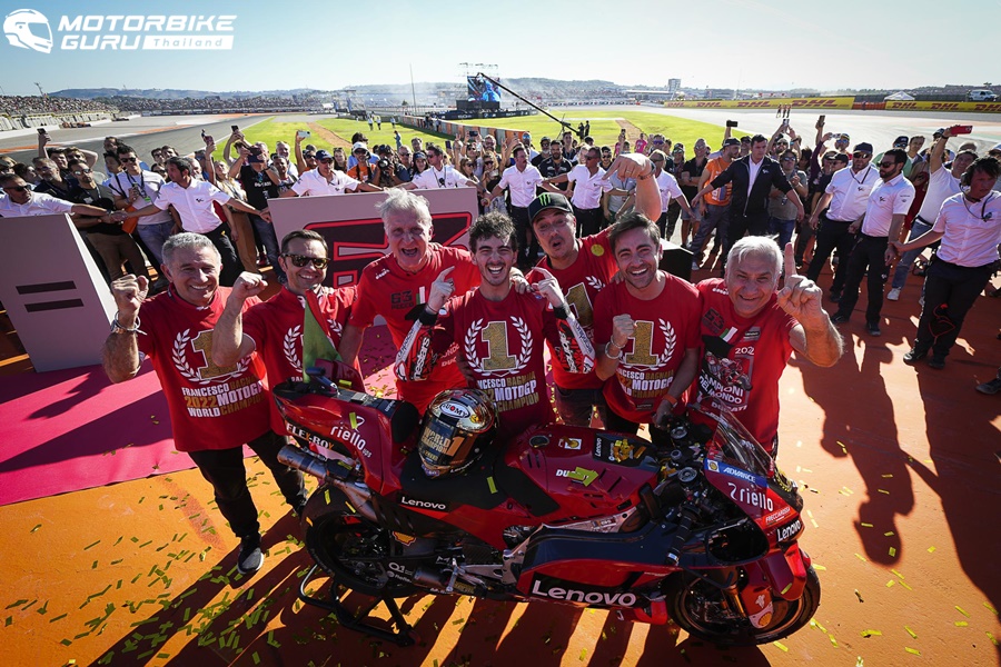 บรรบากาศ Bagnaia ตำแหน่ง MotoGP Championship ครั้งแรกของเขา ซึ่งเป็นนักแข่งของ Ducati ที่คว้าตำแหน่งได้ในรอบ 15 ปีที่ยาวนาน