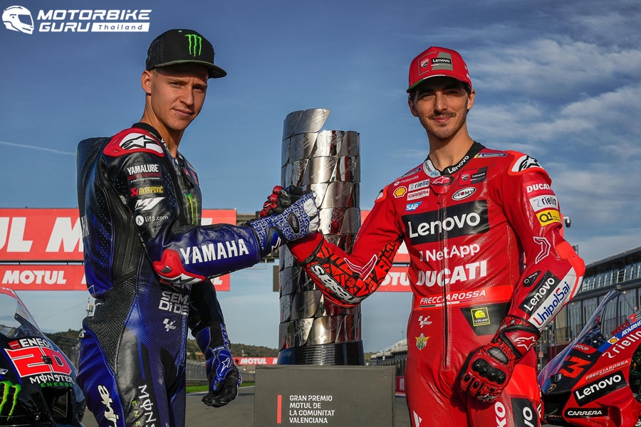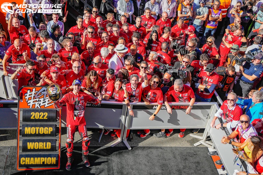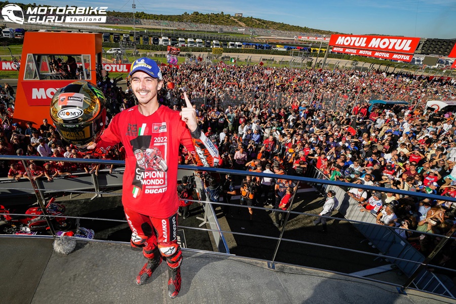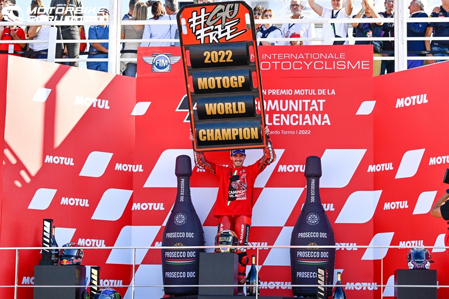 Francesco Bagnaia จาก Ducati Lenovo Team กลายเป็นแชมป์โลก MotoGP World Championship ปี 2022 นับเป็นชัยชนะครั้งประวัติศาสตร์ของ Ducati ถึงแม้ในสนามสุดท้ายของปีการแข่งขันในรายการ Gran Premio Motul de la Comunitat Valenciana เจ้าตัวจะจบการแข่งขันในตำแหน่งที่ 9 ก็ตาม ด้านคู่แข่งอย่าง Fabio Quartararo จาก Monster Energy Yamaha MotoGP ถึงแม้จะจบการแข่งขันในอันดับที่ 4